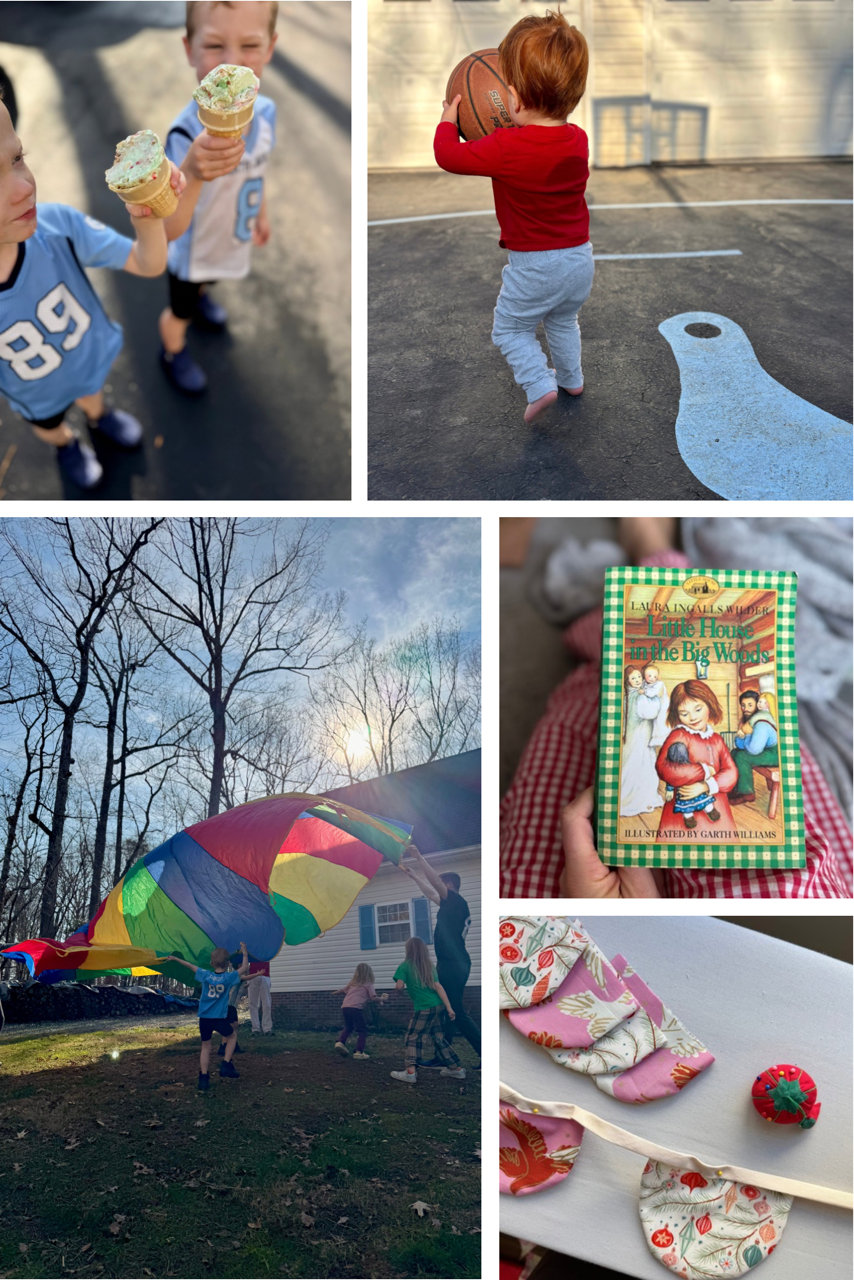 I think we will wind down with a book and call it a night. We recently started reading Little House in the Big Woods and everyone is really into it. My oldest son’s remark after the first few chapters was, “Wow, they’re always busy!” Ha.